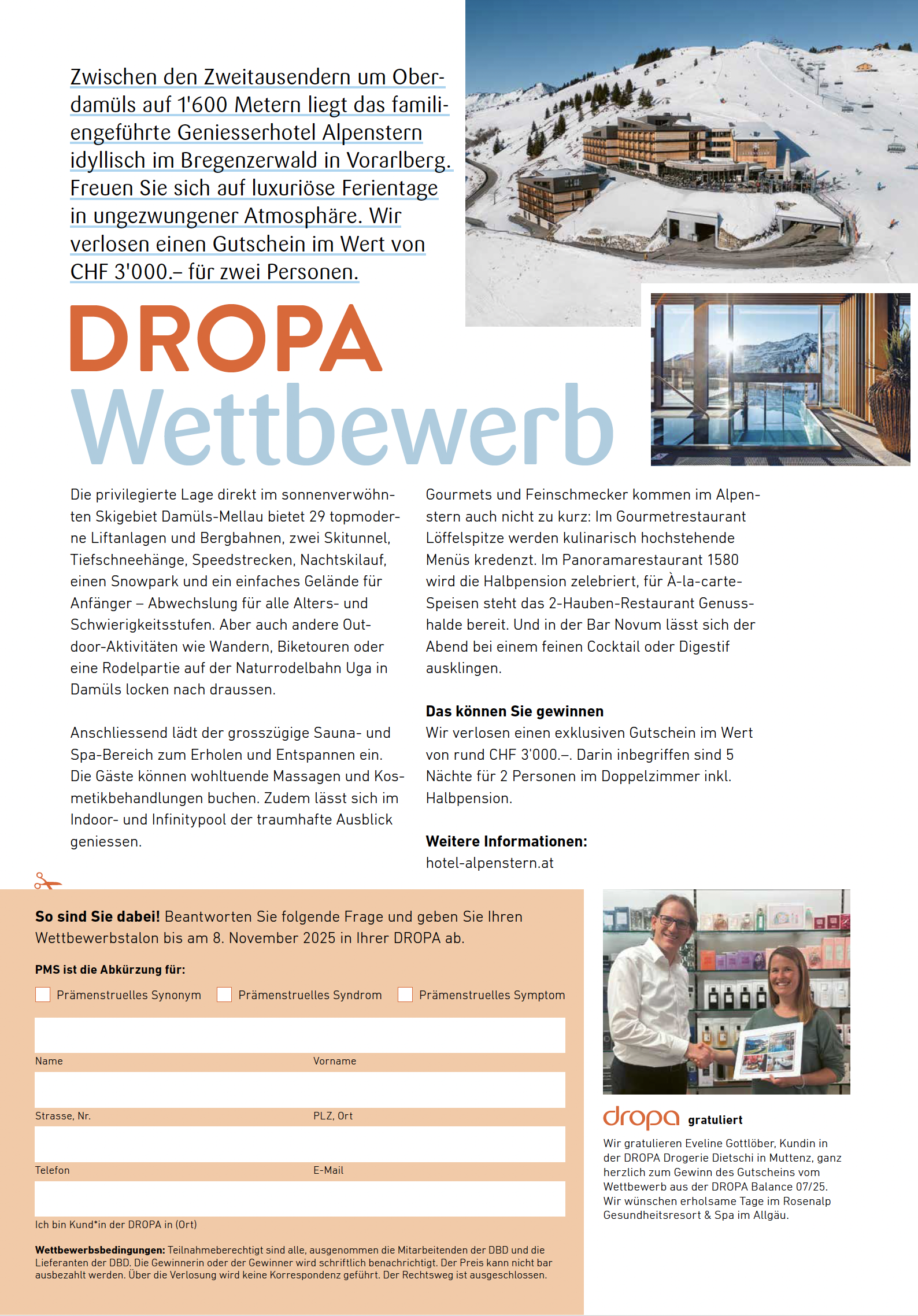 Zwischen den Zweitausendern um Oberdamüls auf 1'600 Metern liegt das familiengeführte Geniesserhotel Alpenstern idyllisch im Bregenzerwald in Vorarlberg. Freuen Sie sich auf luxuriöse Ferientage in ungezwungener Atmosphäre. Wir verlosen einen Gutschein im Wert von CHF 3'000.– für zwei Personen.