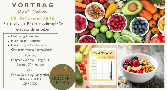 Die DROPA Drogerie Meyer befindet sich im Zentrum Langenthals vis-à-vis vom Coop Center Tell. Die grosse Drogerie hat eine lange Tradition: Seit über 100 Jahren holt sich die Langenthaler Bevölkerung bei uns natürliche Heilmittel, Kosmetikprodukte und Medikamente sowie Tipps rund um ihre Gesundheit und Schönheit.